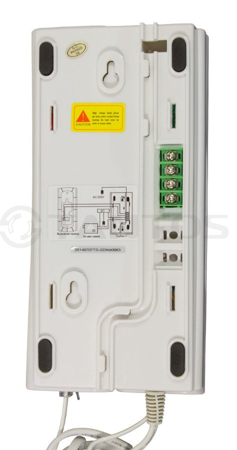 TS-203HA Переговорная трубка аудиодомофона, 2-х проводная. Совместима с комплектом TS-203Kit, вызывными панелями AVC-1xx, JSB-Axx, KC-MD10. Кнопка отрывания замка- "сухие", нормально-разомкнутые контакты. Возможно параллельное подключение до 3-х трубок в одной системе. Цвет белый. Питание 220В