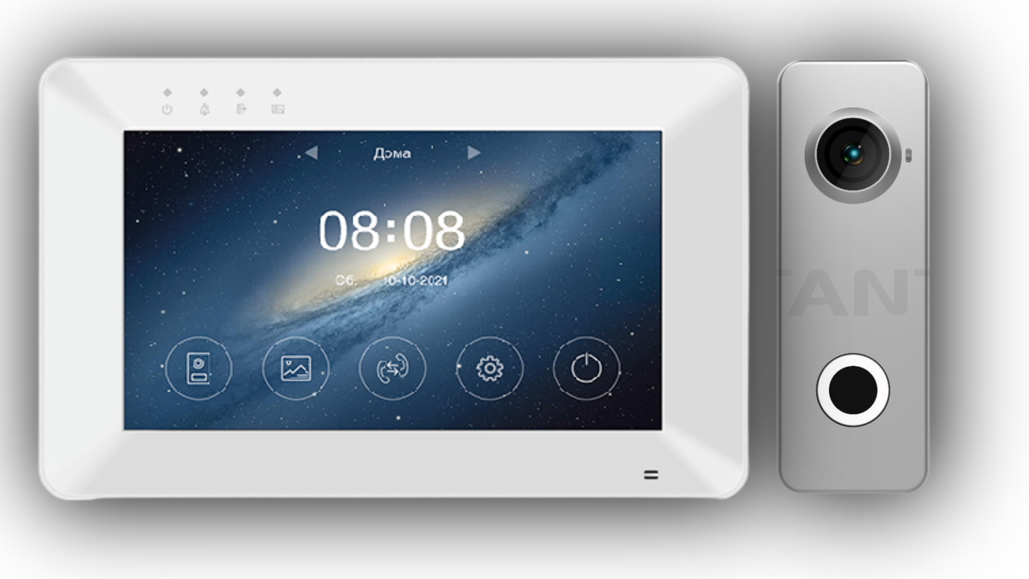 Комплект цветного HD видеодомофона, состоящий из монитора с экраном 7 дюймов с поддержкой работы с мобильным приложением vhOme 2.2 и вызывной панели